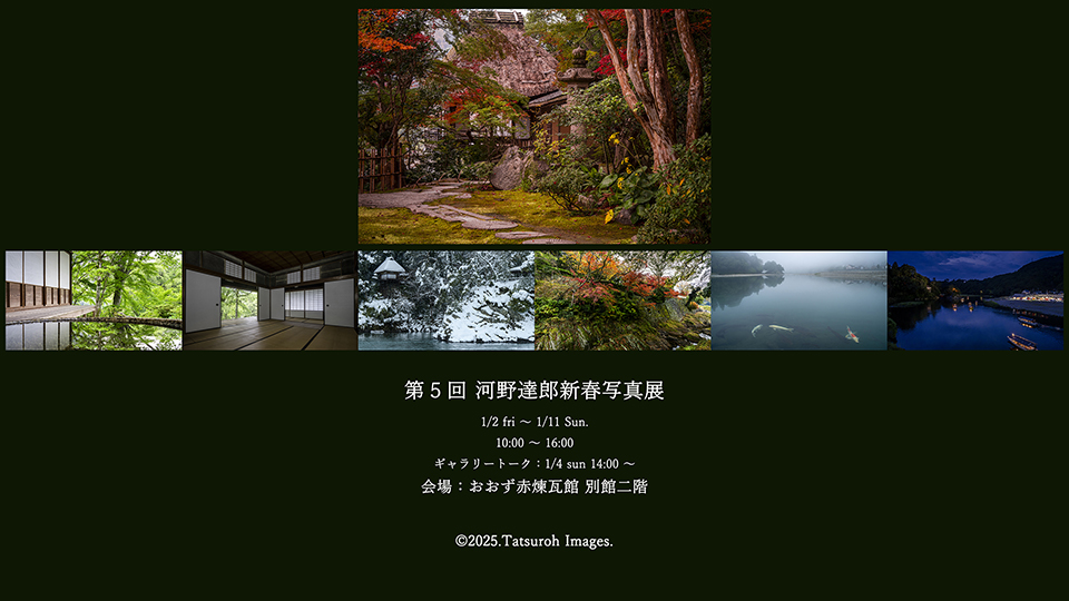 ![]() 第5回 河野達郎新春写真展開催のお知らせ ギャラリートークを開催します。 |